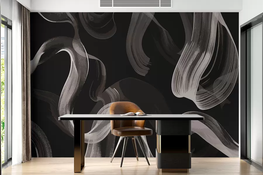 Gran ola de mar embravecida en colores oscuros con toques brillantes sobre un fondo a rayas