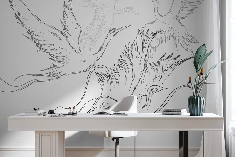 Pájaros volando, minimalismo, arte lineal, naturaleza, color gris