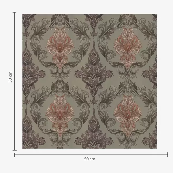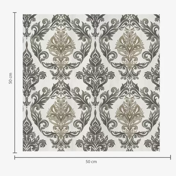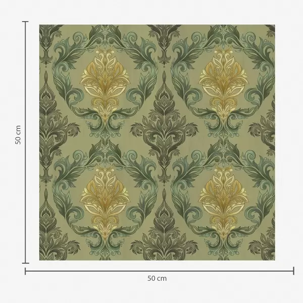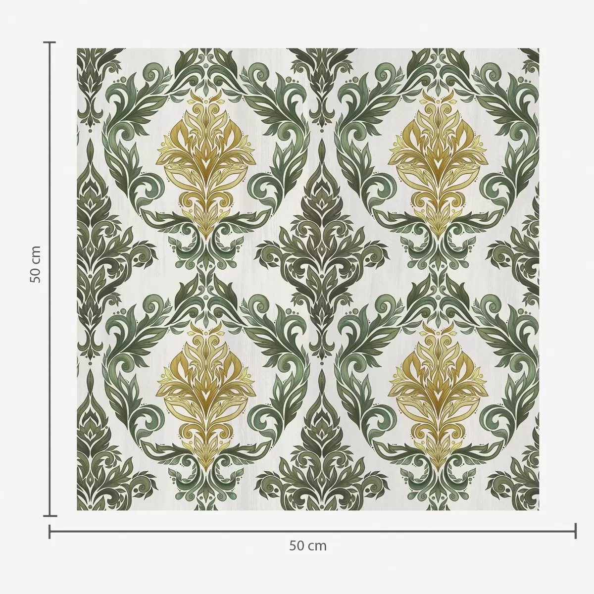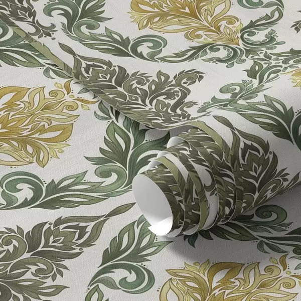 Papel tapiz Damasco con volutas verdes sobre fondo claro. Nr. a00828v1