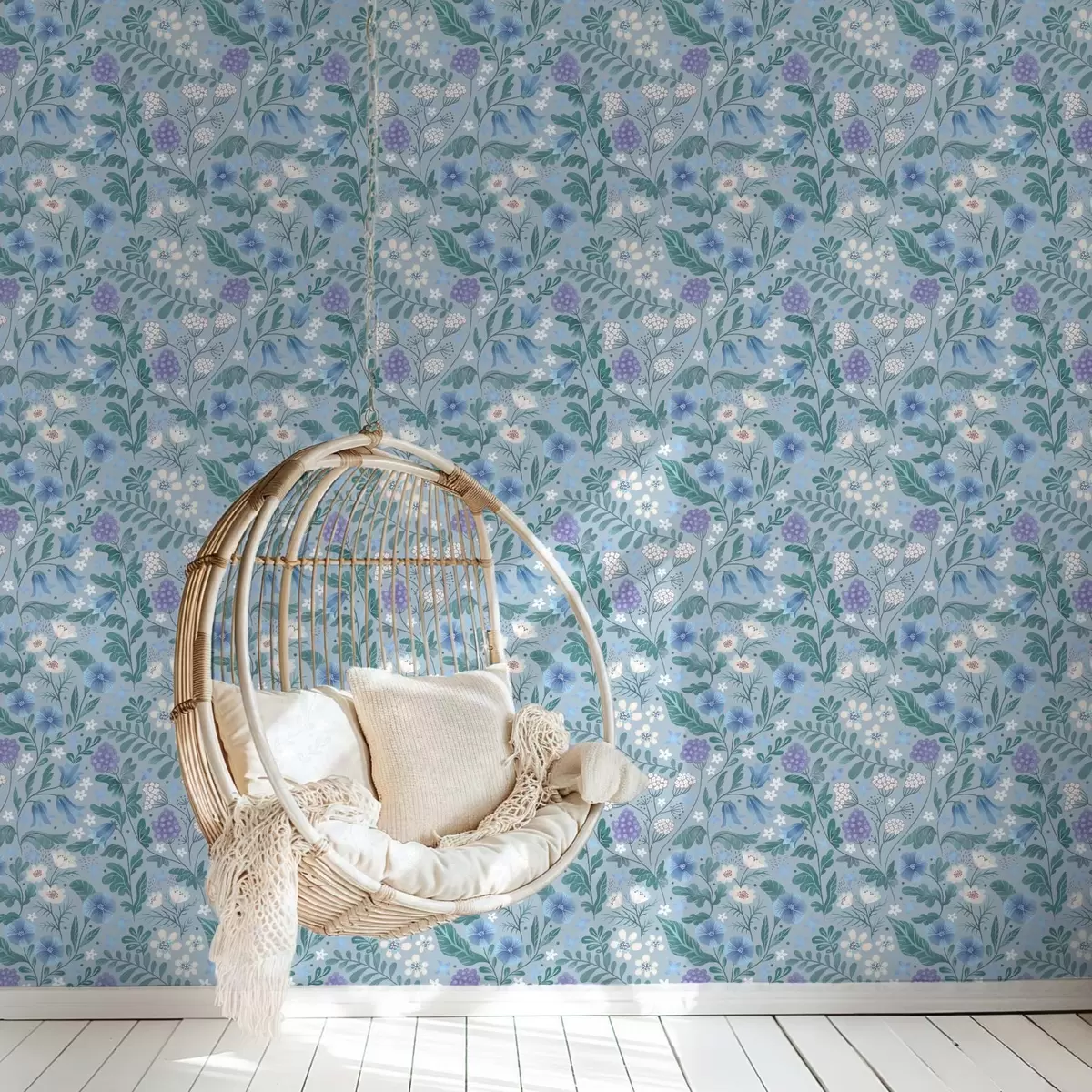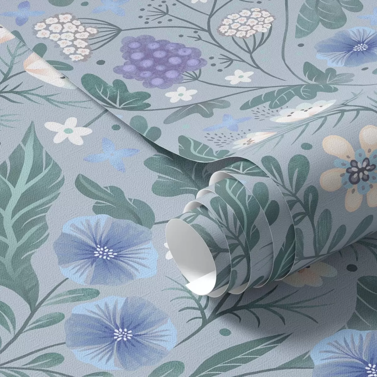 Papel pintado Flores silvestres y bayas sobre fondo gris azulado a00849v1