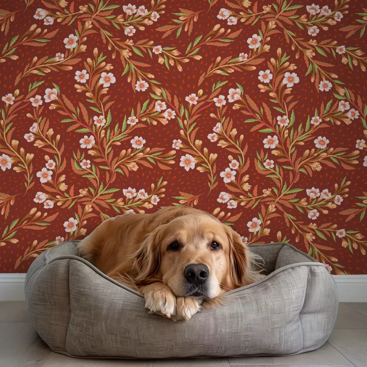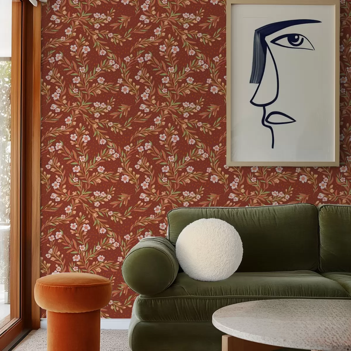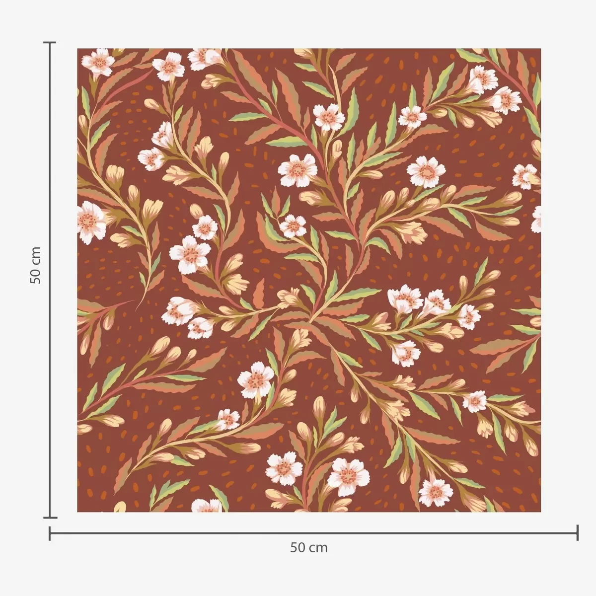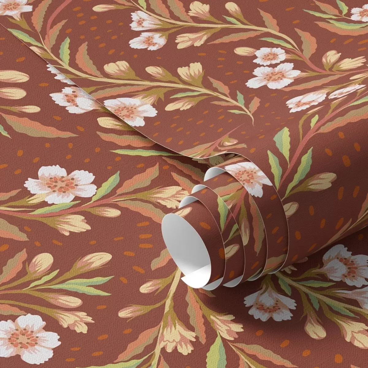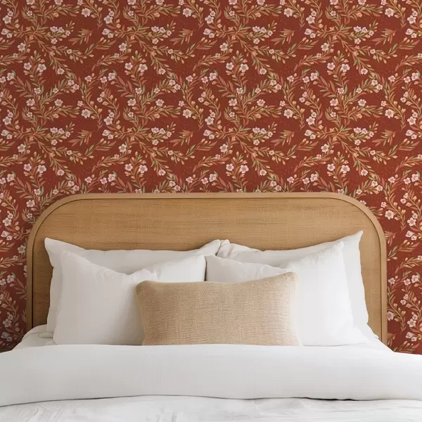 Papel tapiz Ramas con flores blancas sobre fondo terracota Nr. a00850v1