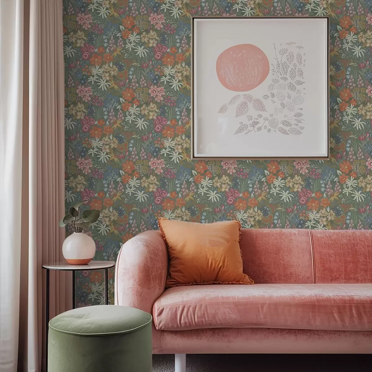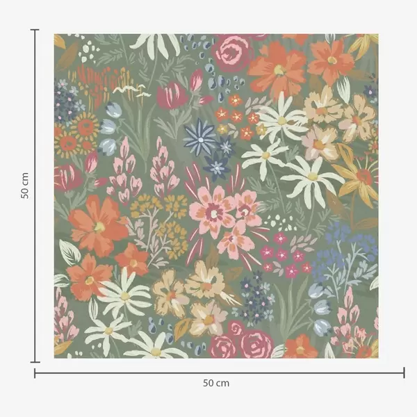 Fotomurales Flores campestres pintadas sobre fondo verde salvia Nr. a00864