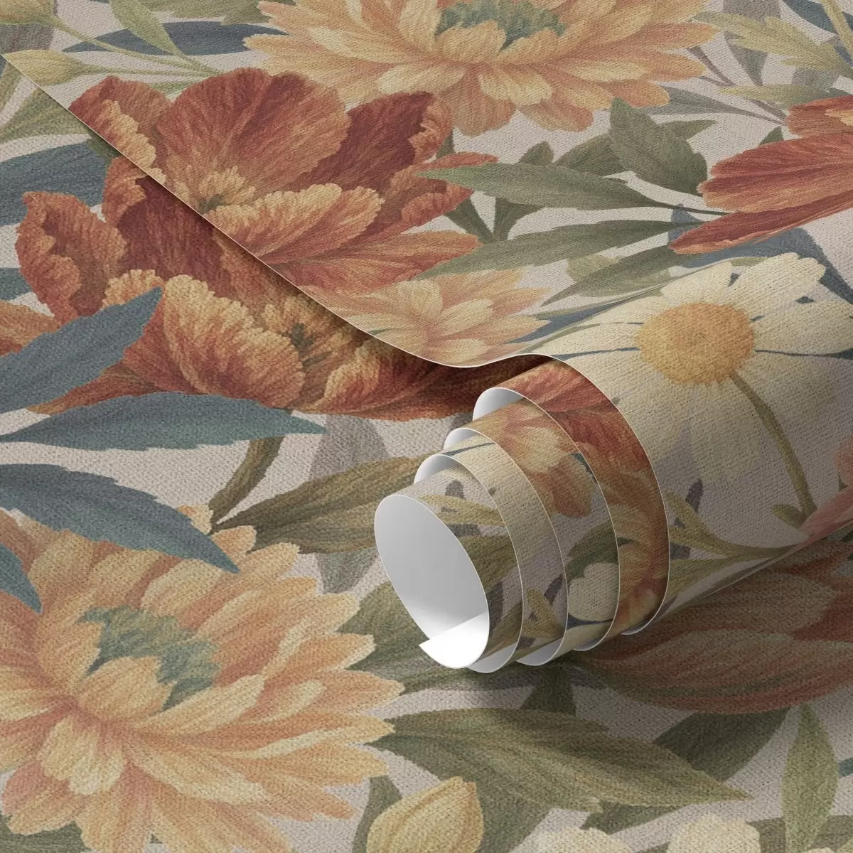 Fotomurales Flores vintage de jardín en cálidos tonos terracota y melocotón. Nr. a00874