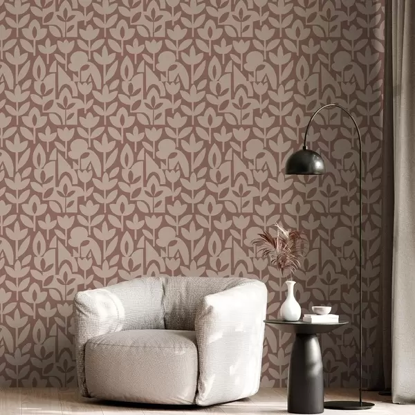 Fotomurales Siluetas florales geométricas en terracota y crema. Nr. a00875v2