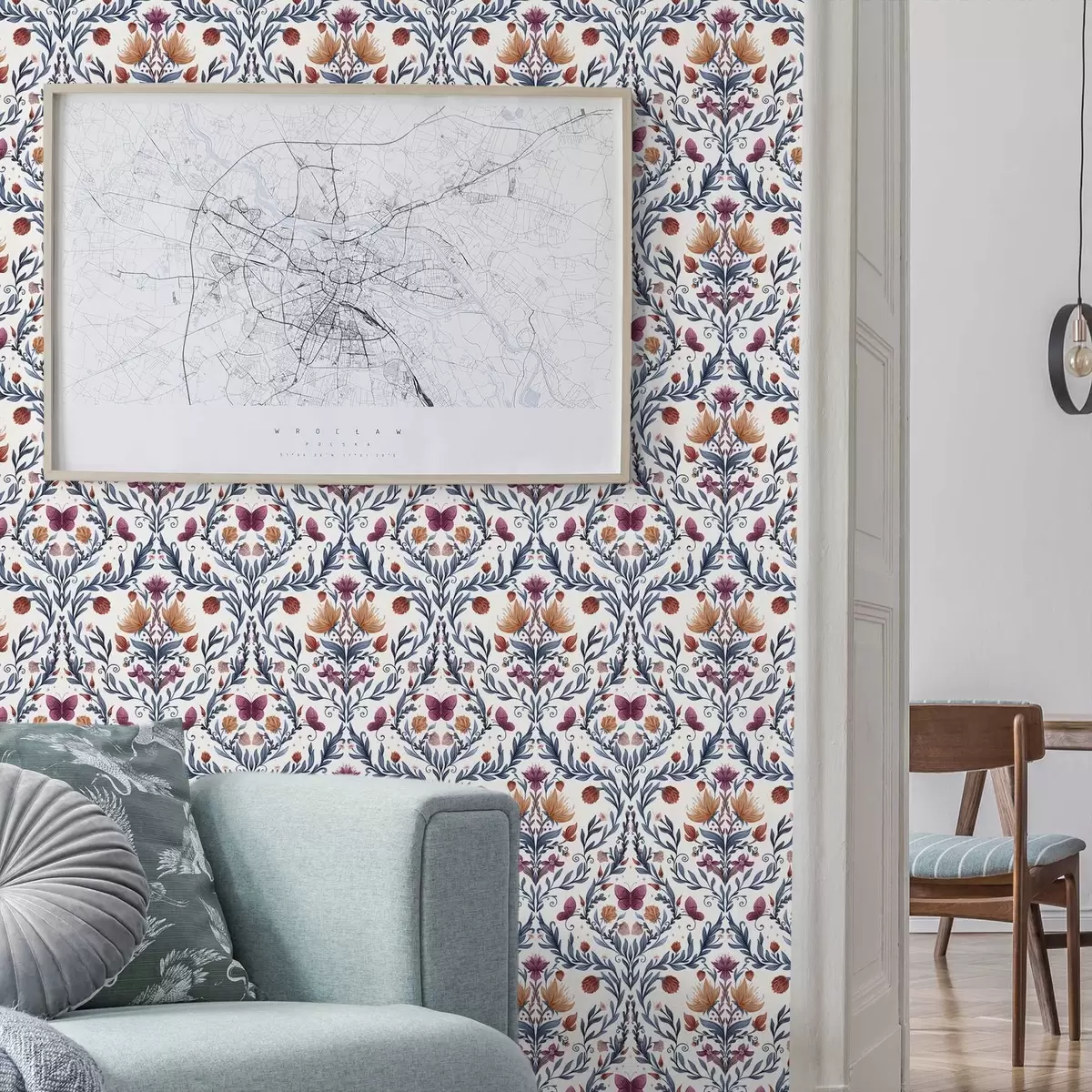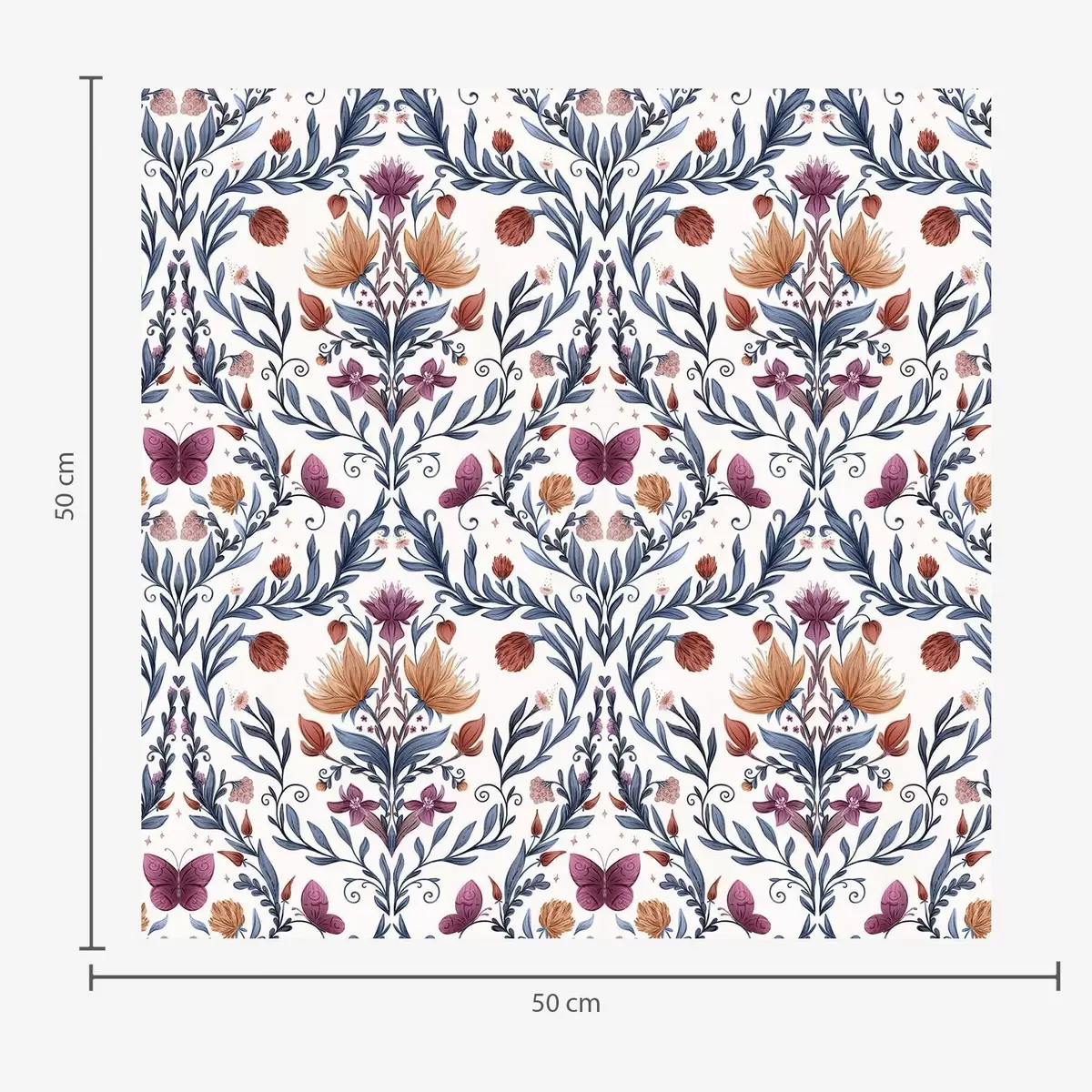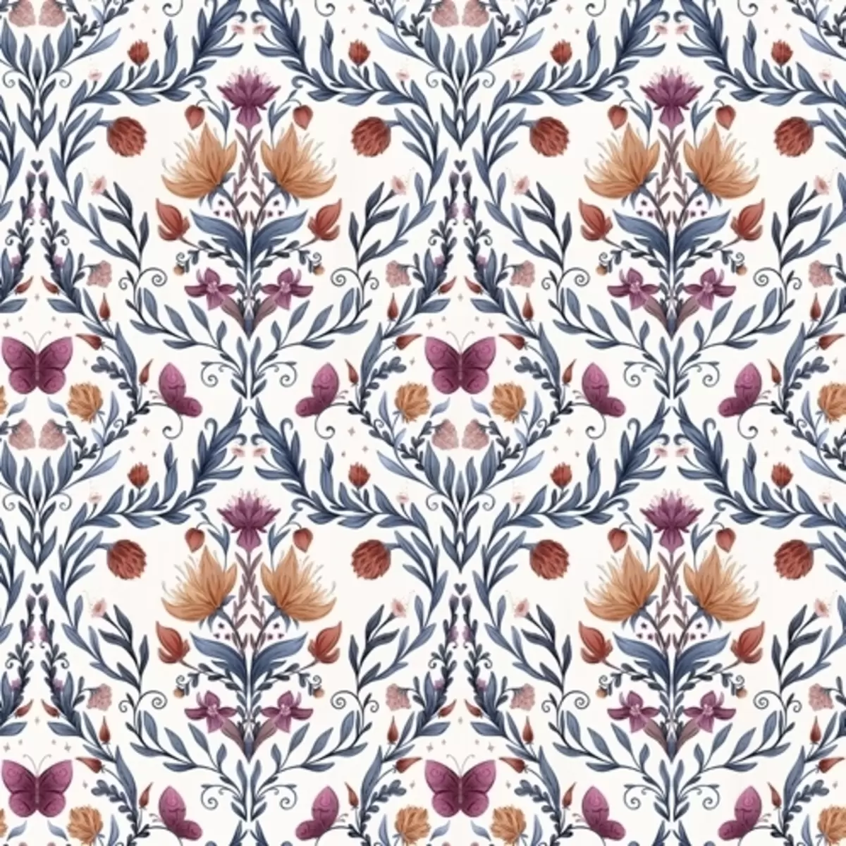 Fotomurales Damasco floral con mariposas sobre fondo crema cálido Nr. a00926v2