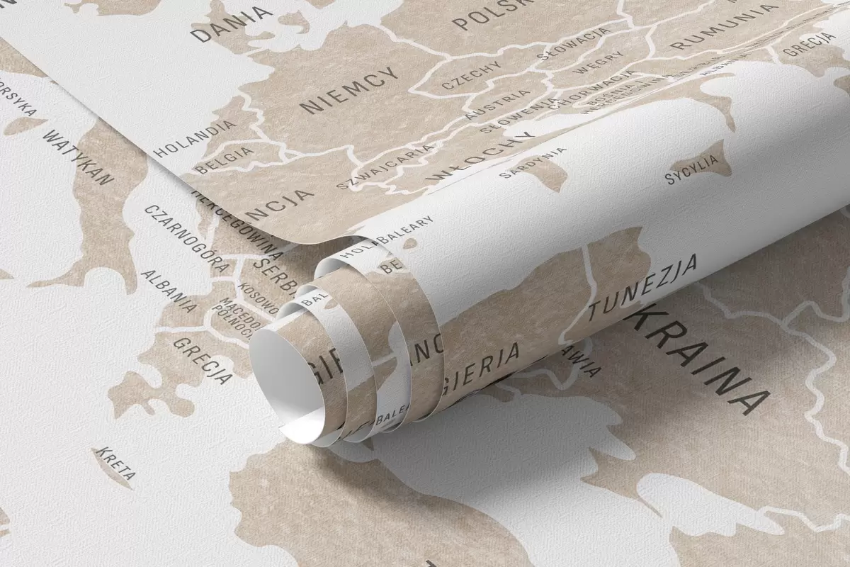 Fotomurales Mapa infantil en estilo acuarela con animales y globos aerostáticos. Idioma polaco. Color beige. Nr. c00001plv2