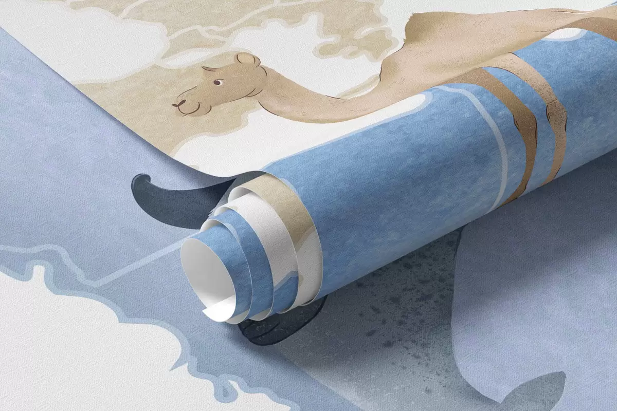 Fotomurales Un mapa azul con estilo de acuarela en el que aparecen animales. Etiquetas en polaco Nr. c00012plv1