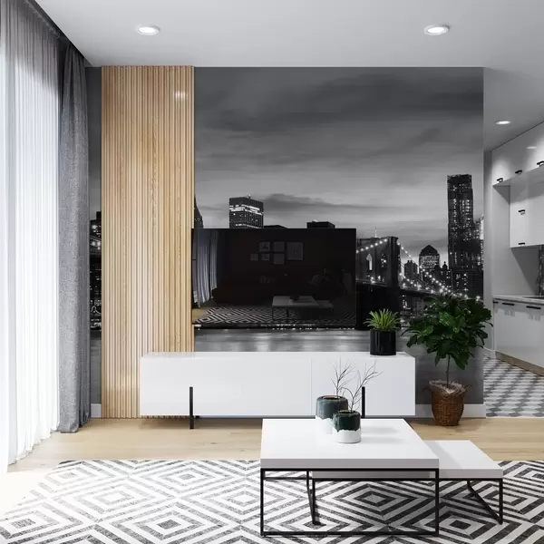 Fotomurales Horizonte de la ciudad al atardecer en monocromo Nr. u55510
