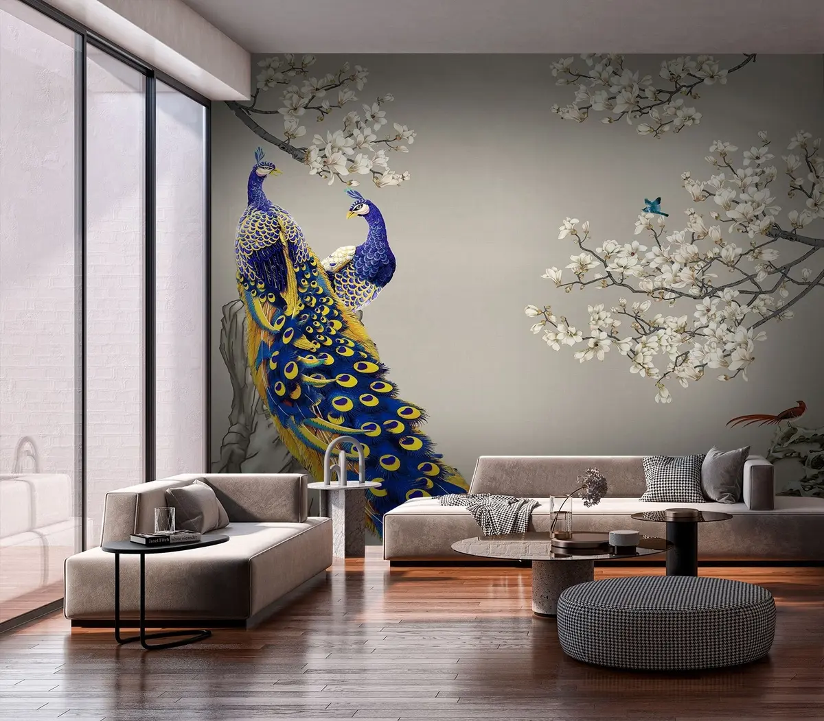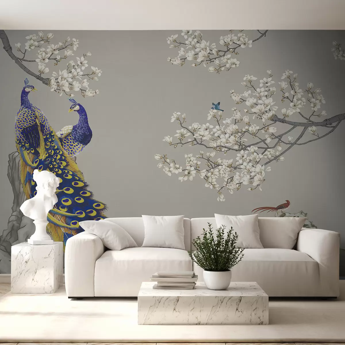 Fotomurales Pavo real en ramas de Sakura Nr. u79801