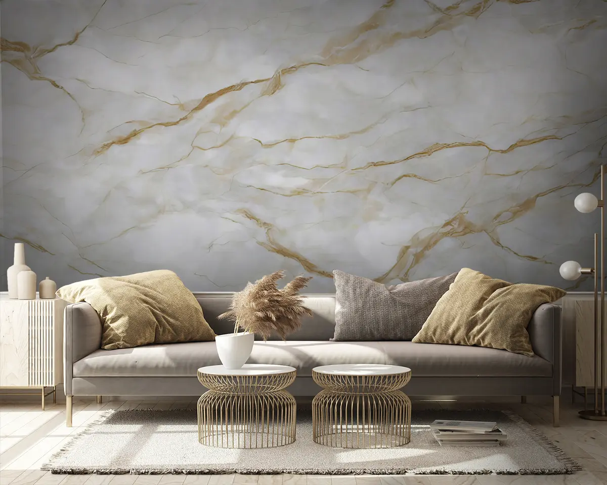 Fotomurales Mármol blanco con líneas beige Nr. u93433