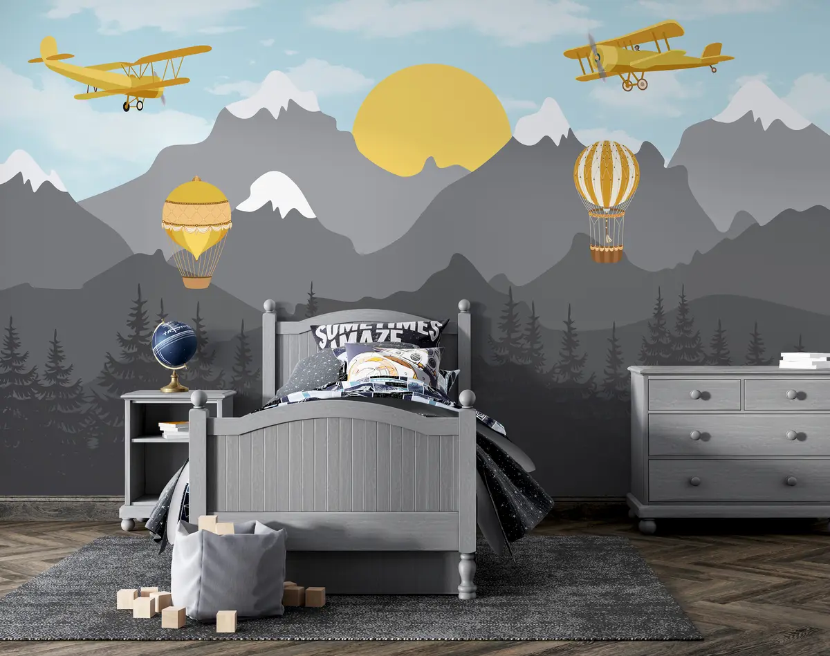 Fotomurales Montañas, bosques y aviones en el cielo. Nr. u94821