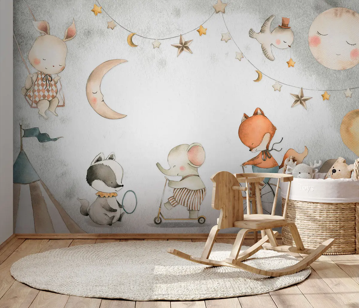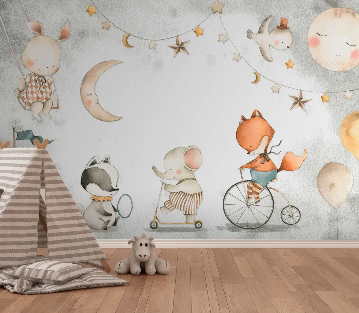 Fotomurales Animales del bosque elefante, zorro, tejón y conejo. Nr. u96075