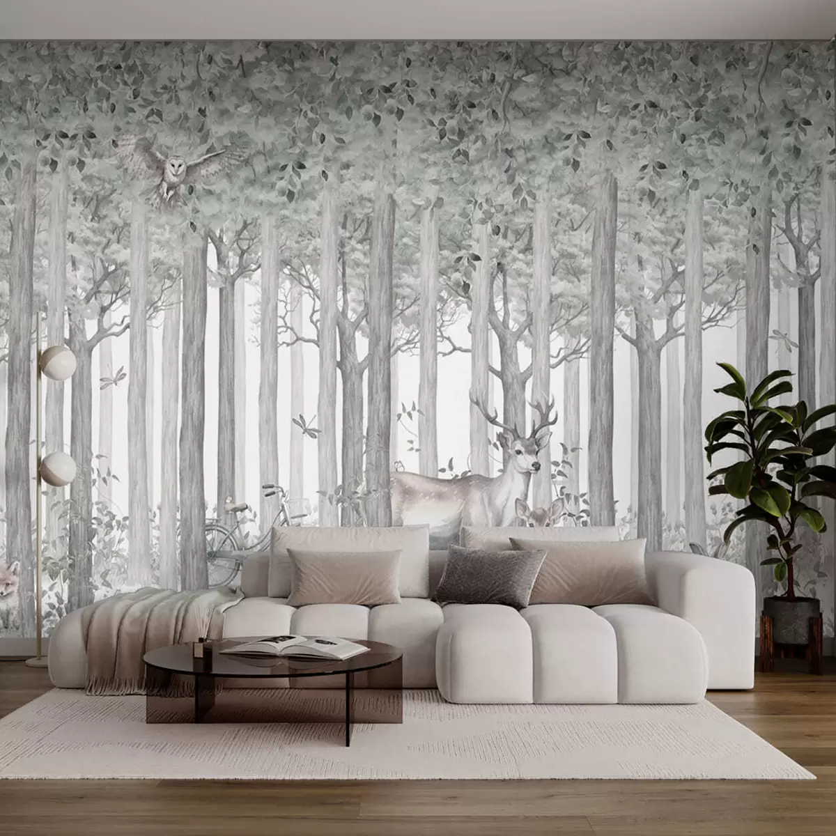 Fotomurales Animales del bosque ciervo y búho en gris Nr. u97629v1