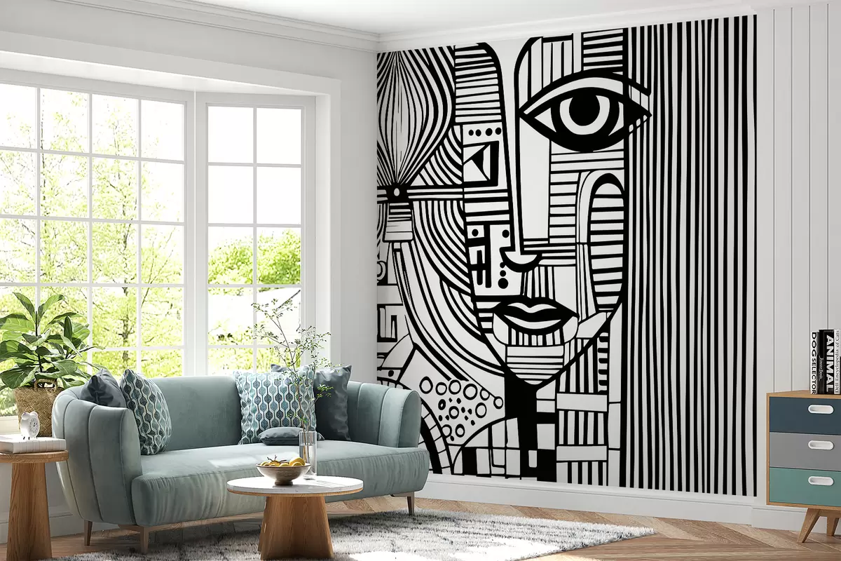 Fotomurales Rostro abstracto en blanco y negro Nr. u98714
