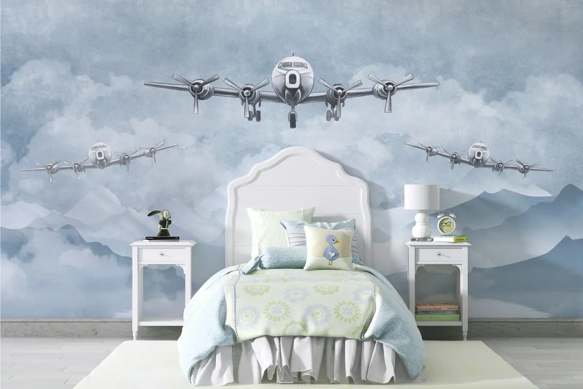 Fotomurales Tres aviones en el cielo sobrevolando las montañas Nr. u98946