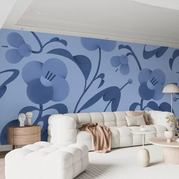 Fotomurales Estampado botánico con flores decorativas en azul Nr. u99196v8