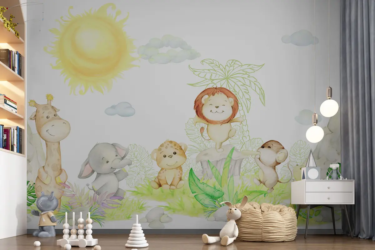 Fotomurales Simpáticos animales tropicales en estilo acuarela Nr. u99486