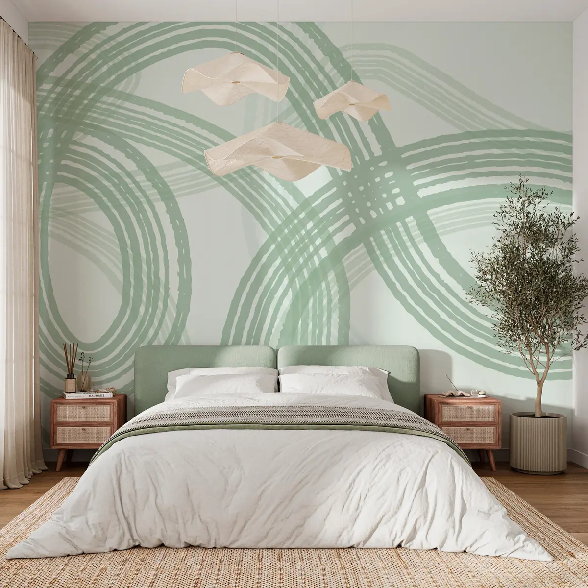 Fotomurales Líneas abstractas estilo boho color verde. Nr. w00417v2