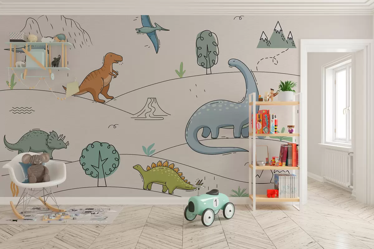 Fotomurales Dinosaurios coloridos en las colinas. Nr. w00637