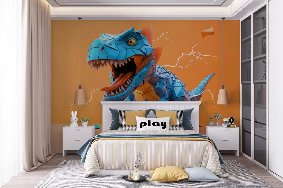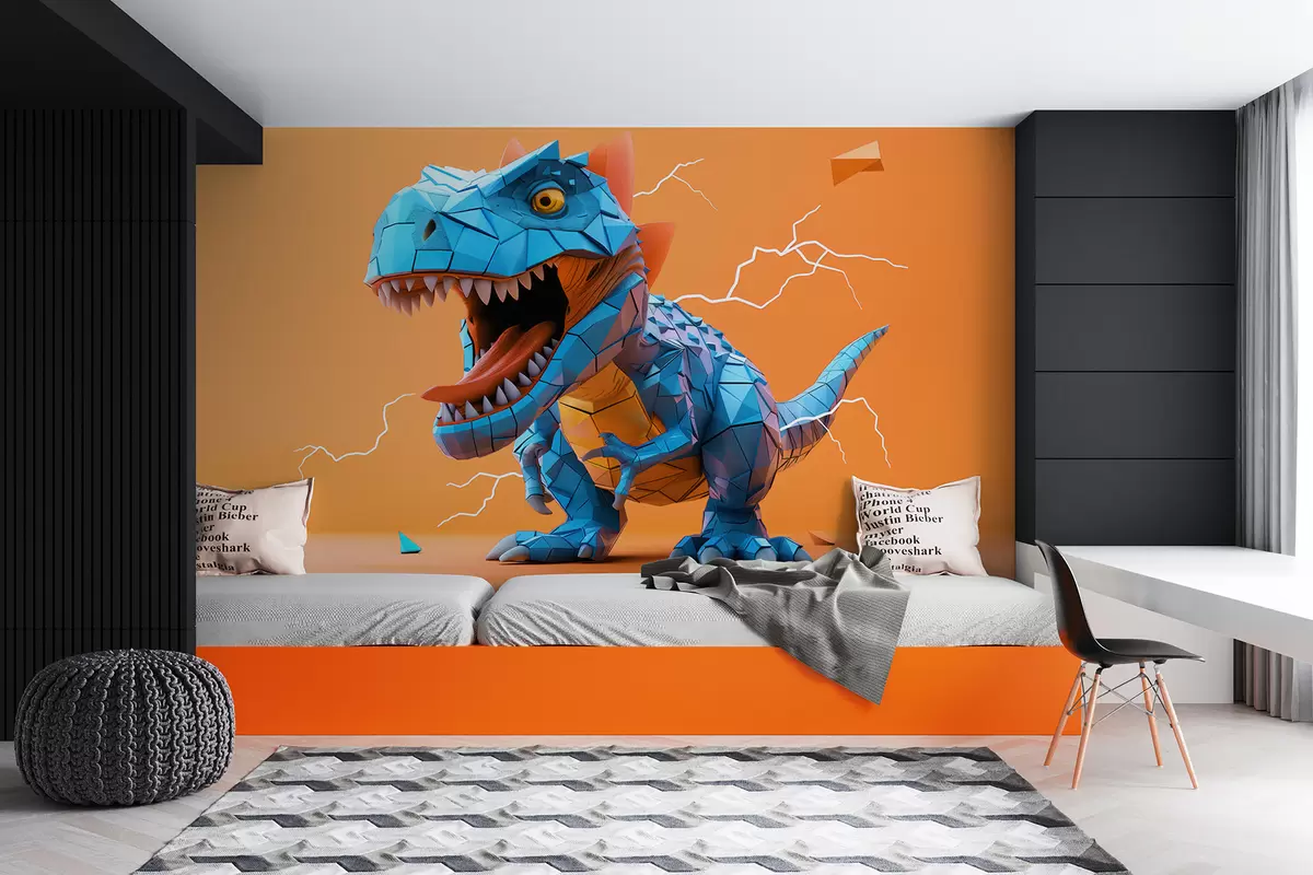 Fotomurales Dinosaurio feroz con un rayo en colores amarillo y azul. Nr. w01333v1