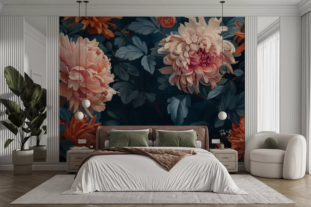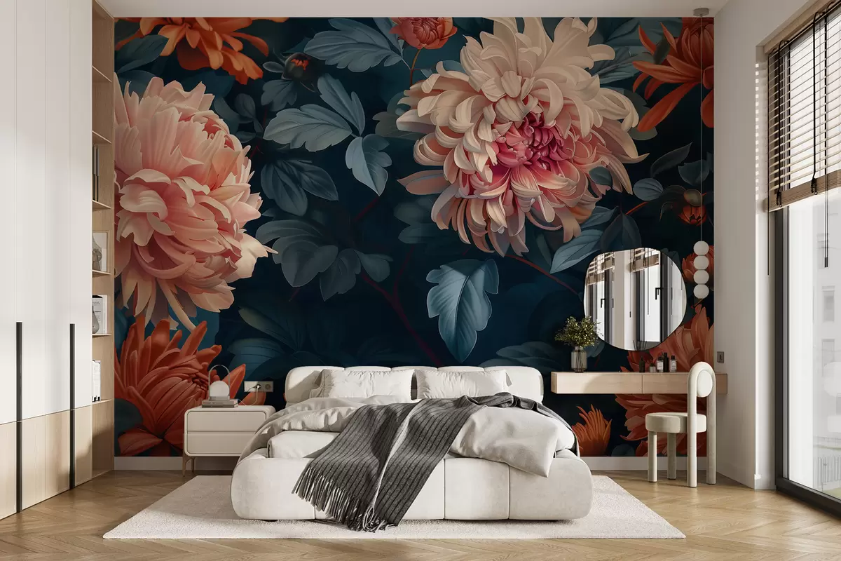 Fotomurales Elegante composición de crisantemos en colores pastel. Nr. w01431