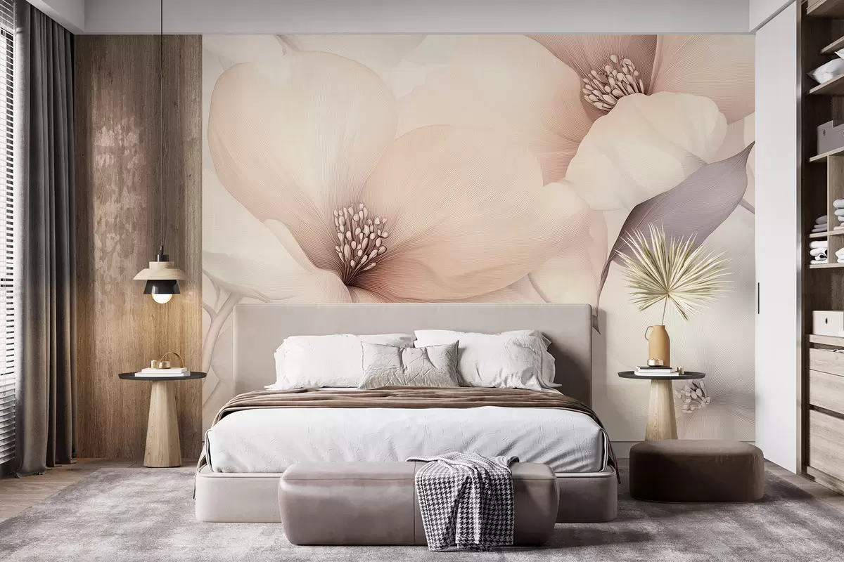 Fotomurales Flores acrílicas, composición floral, naturaleza, colores beige pastel Nr. w01447
