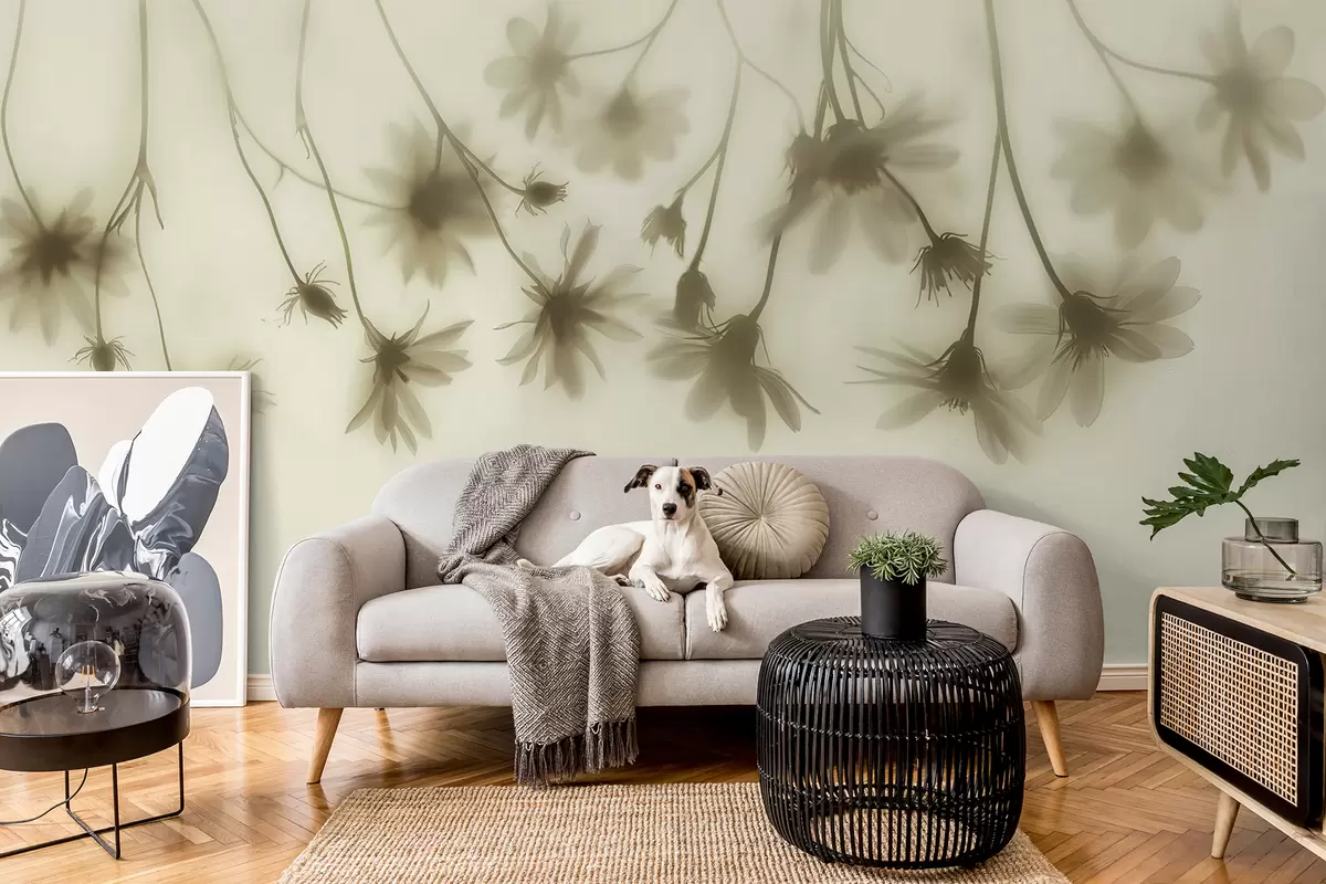 Fotomurales Delicadas flores en la niebla colgando desde arriba en colores pastel. Nr. w01469v1