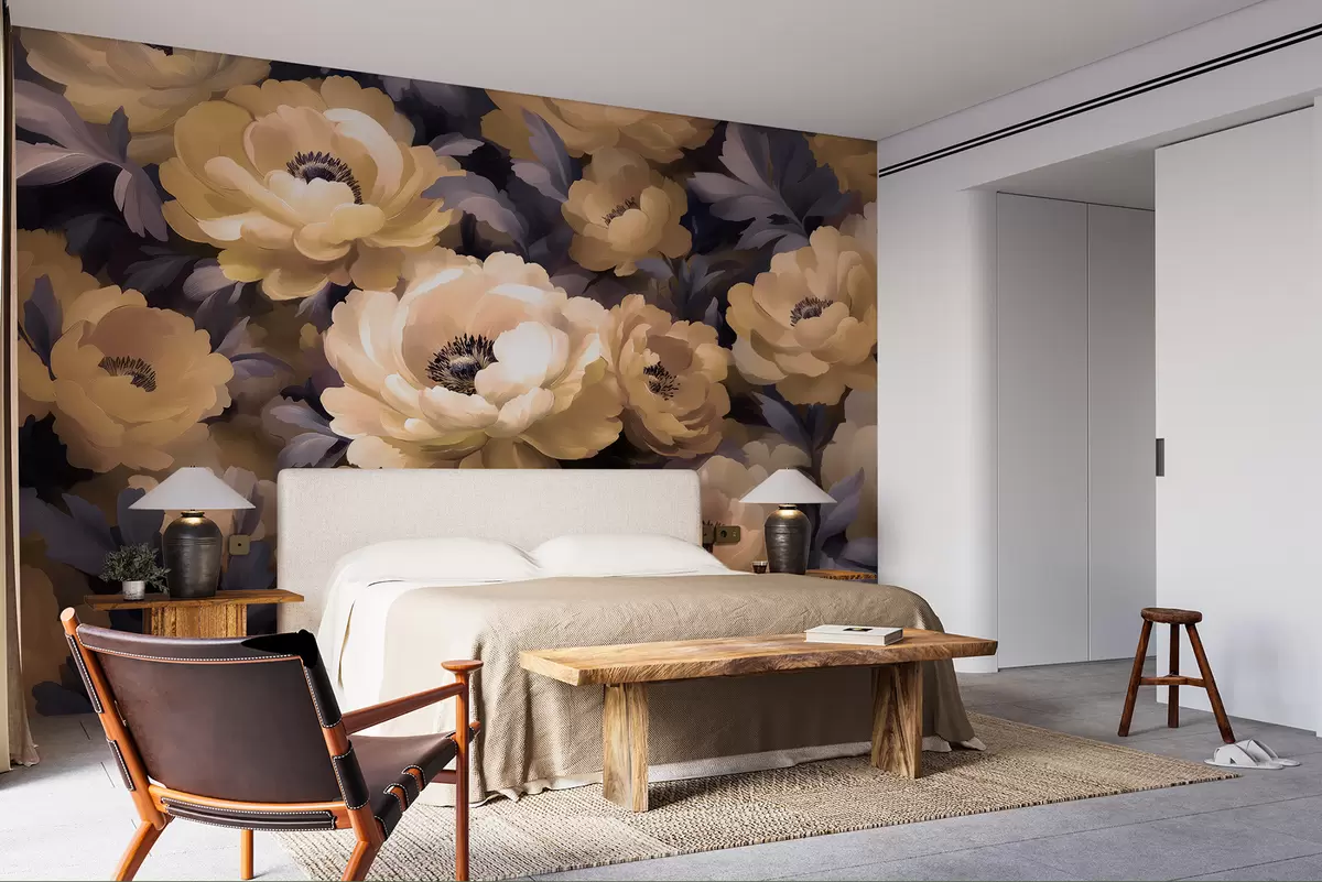 Fotomurales Pintura al óleo de estilo floral basada en el color beige y morado Nr. w01581