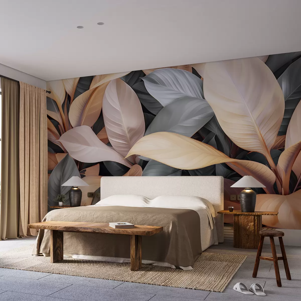 Fotomurales Grandes hojas tropicales en colores azul y beige Nr. w01587v2