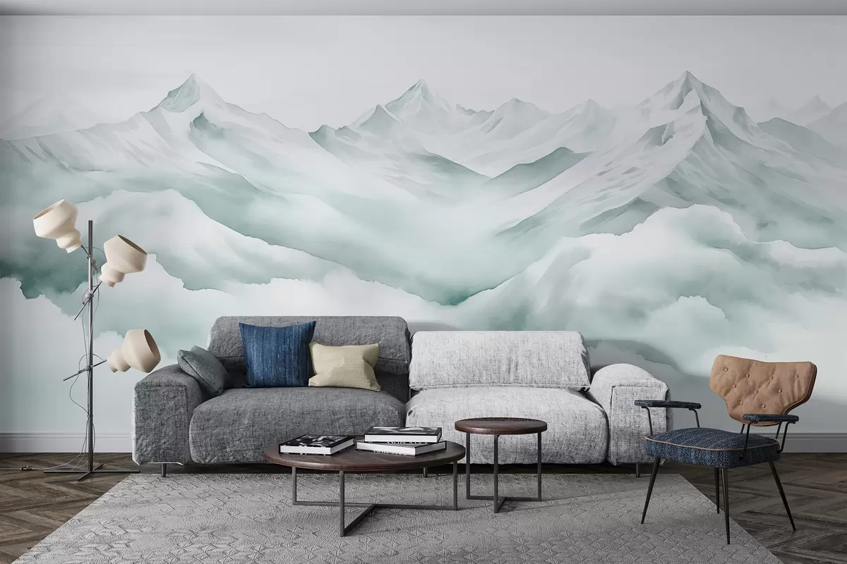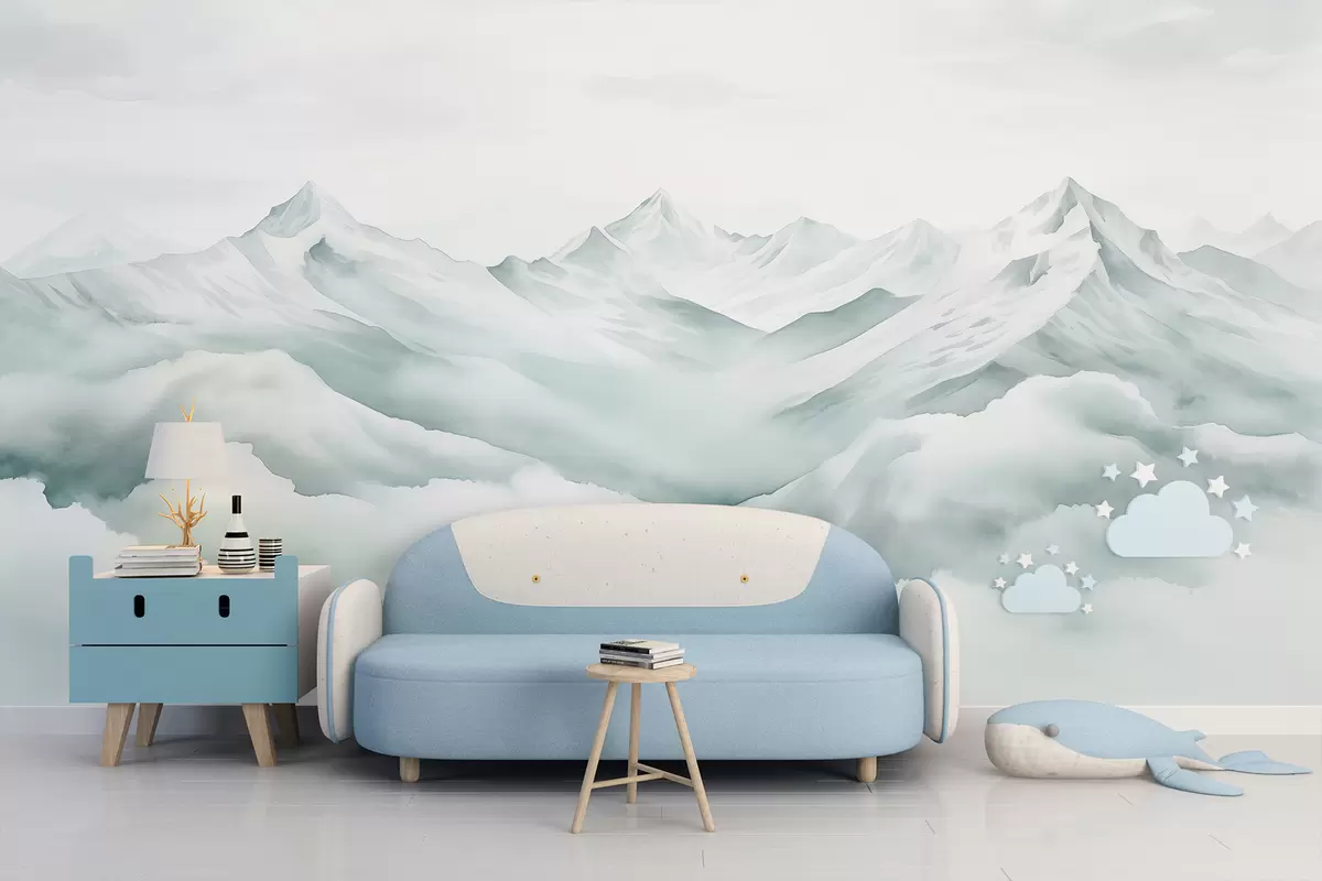 Fotomurales Paisaje de montaña, acuarela, colores azules suaves Nr. w01787v2