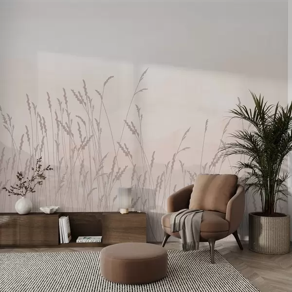 Fotomurales Montañas rosa pálido,beige,hierba beige oscuro,rosa Nr. w01811