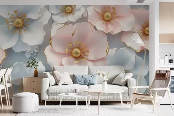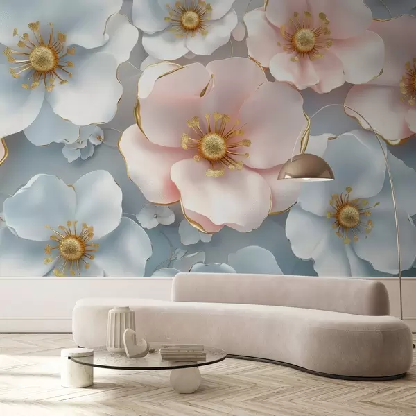 Fotomurales Flores abstractas azules y rosas con acentos sobre un fondo elegante en colores suaves Nr. w01855