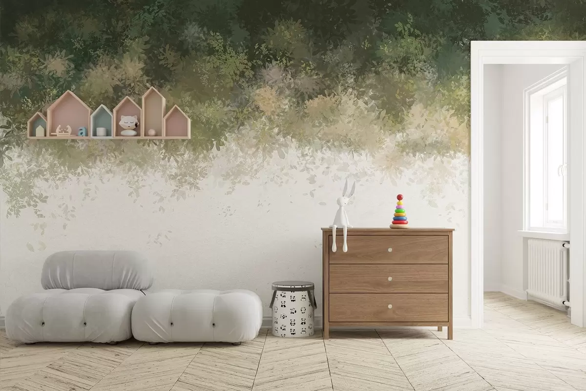 Fotomurales Hermosas hojas verdes, ornamento floral, acuarela, naturaleza Nr. w01879
