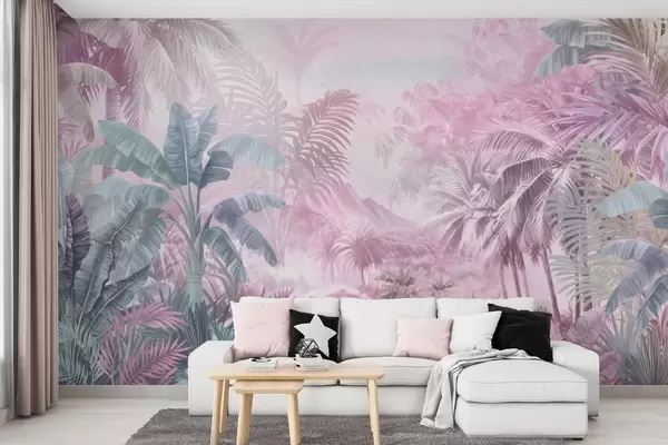 Fotomurales Selva tropical en suaves tonos rosados Nr. w01931v3