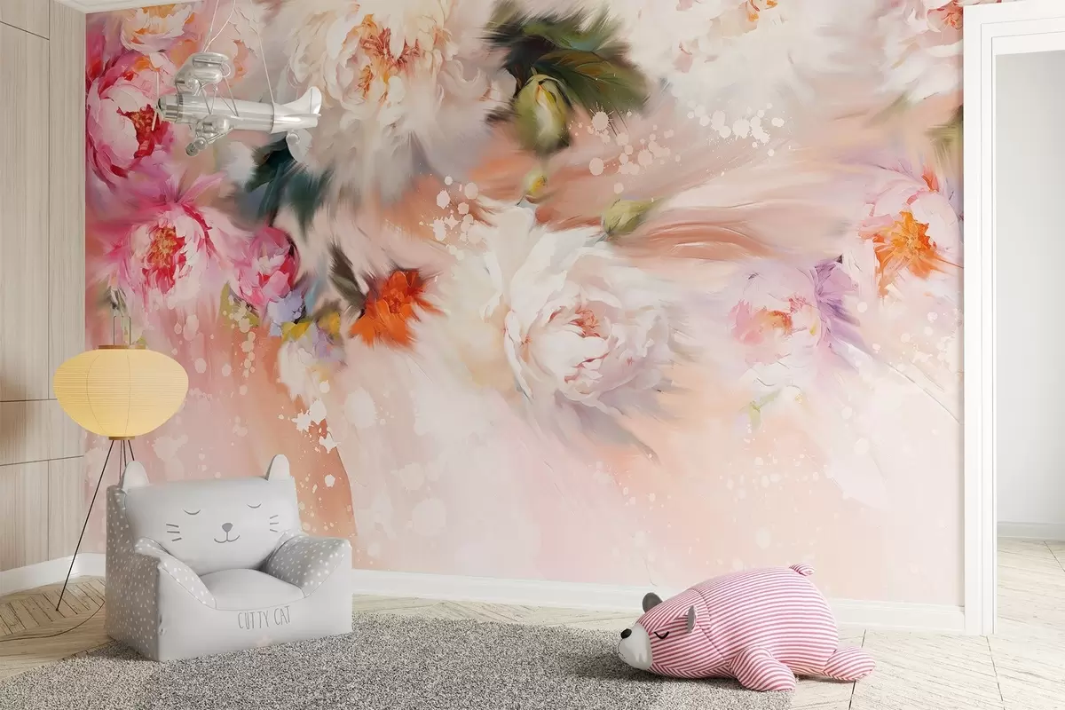 Fotomurales Peonías acrílicas, pinceladas, floral, colores pastel suaves Nr. w02021