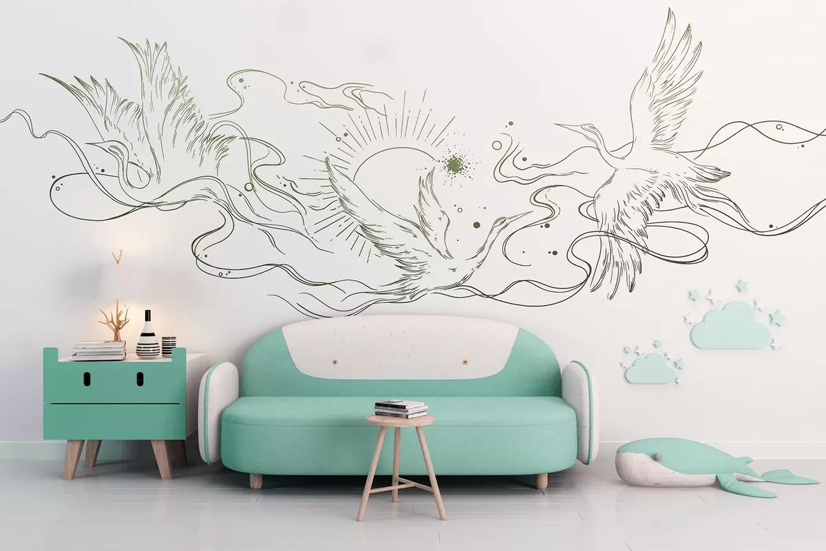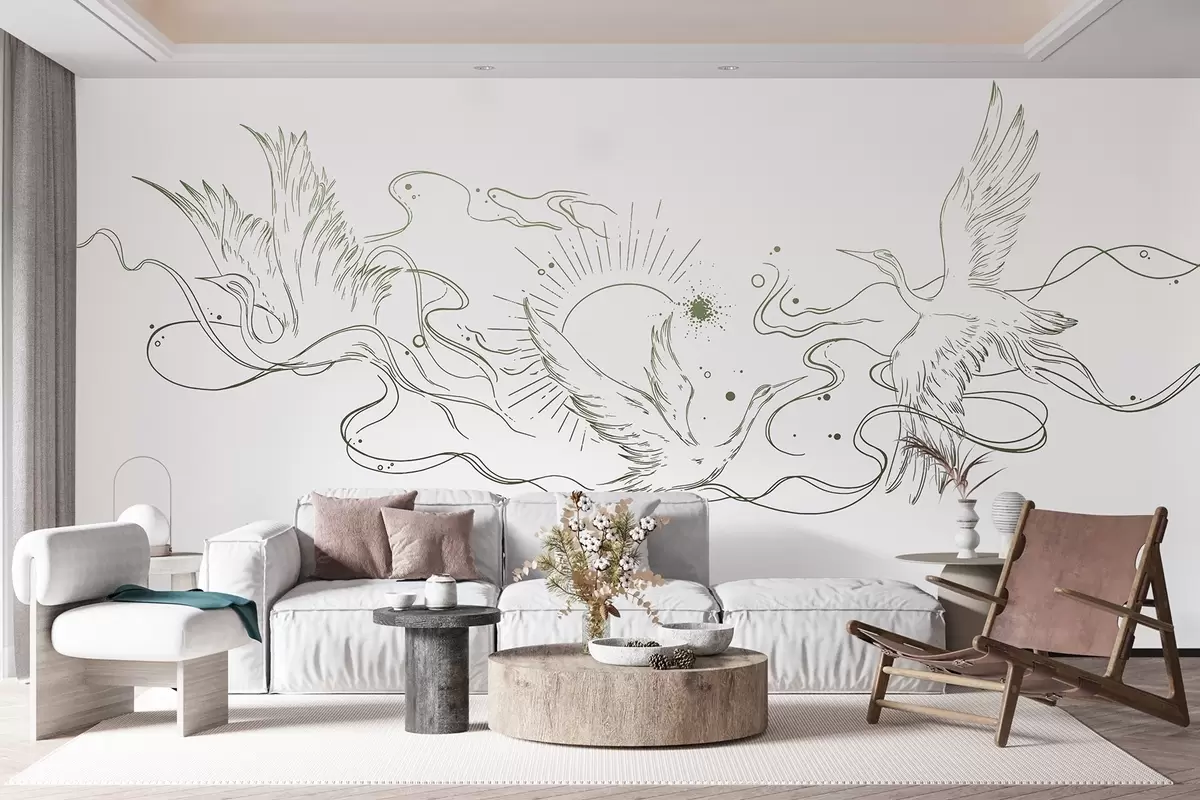 Fotomurales Pájaros voladores, dibujo lineal, minimalismo, paleta de colores grises Nr. w02022v1