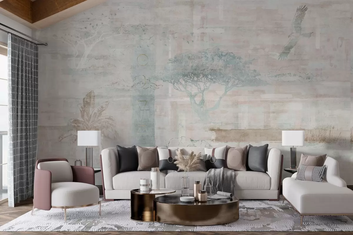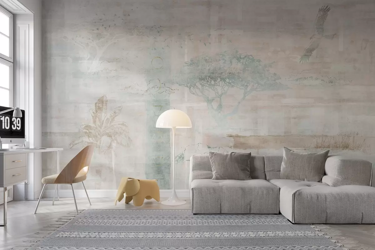 Se puede limpiar suavemente con una esponja suave. Los murales de pared con recubrimiento de barniz pueden limpiarse con agua.