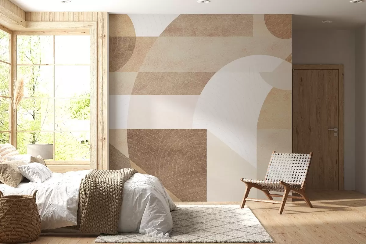 Fotomurales Geometría moderna con formas abstractas, detalles texturizados en tonos beige y marrón Nr. w02140
