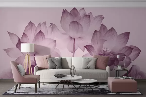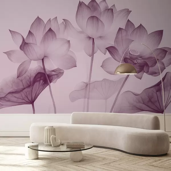 Fotomurales Tres lotos con hojas al estilo de la pintura china en color púrpura Nr. w02146v1