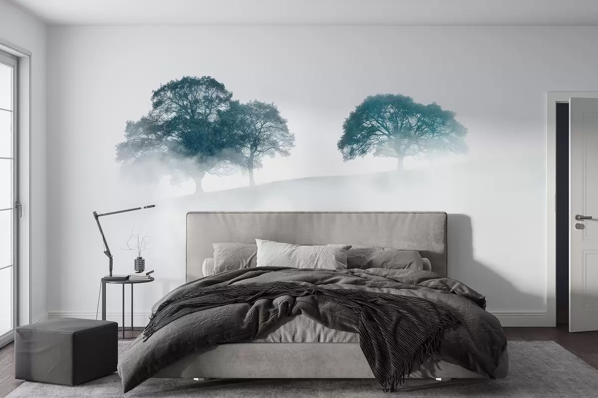 Fotomurales Árboles en la colina, minimalismo, naturaleza, paleta de colores azules Nr. w02148v1