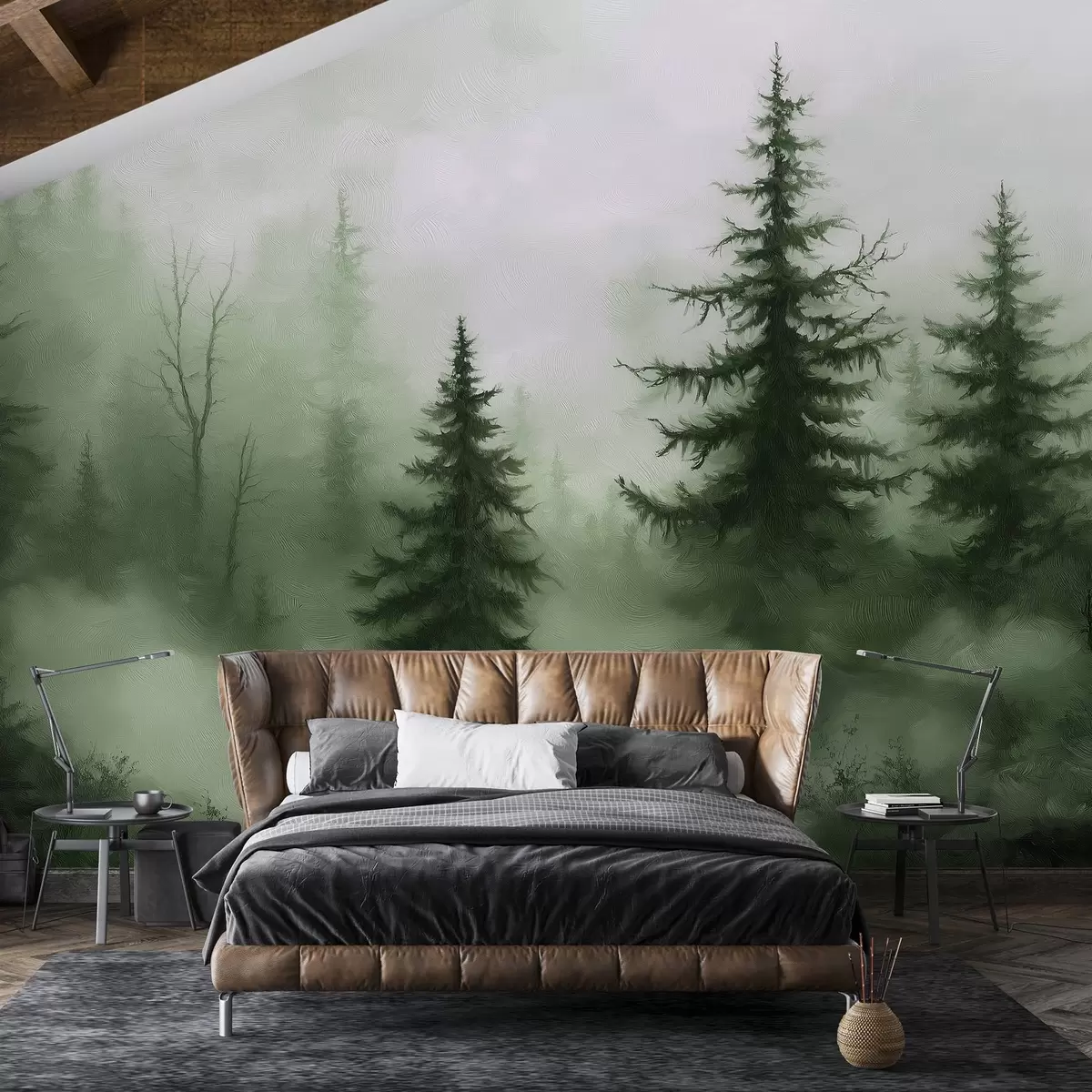 Fotomurales Bosque verde oscuro, pintura al óleo, pinceladas, naturaleza Nr. w02153v1