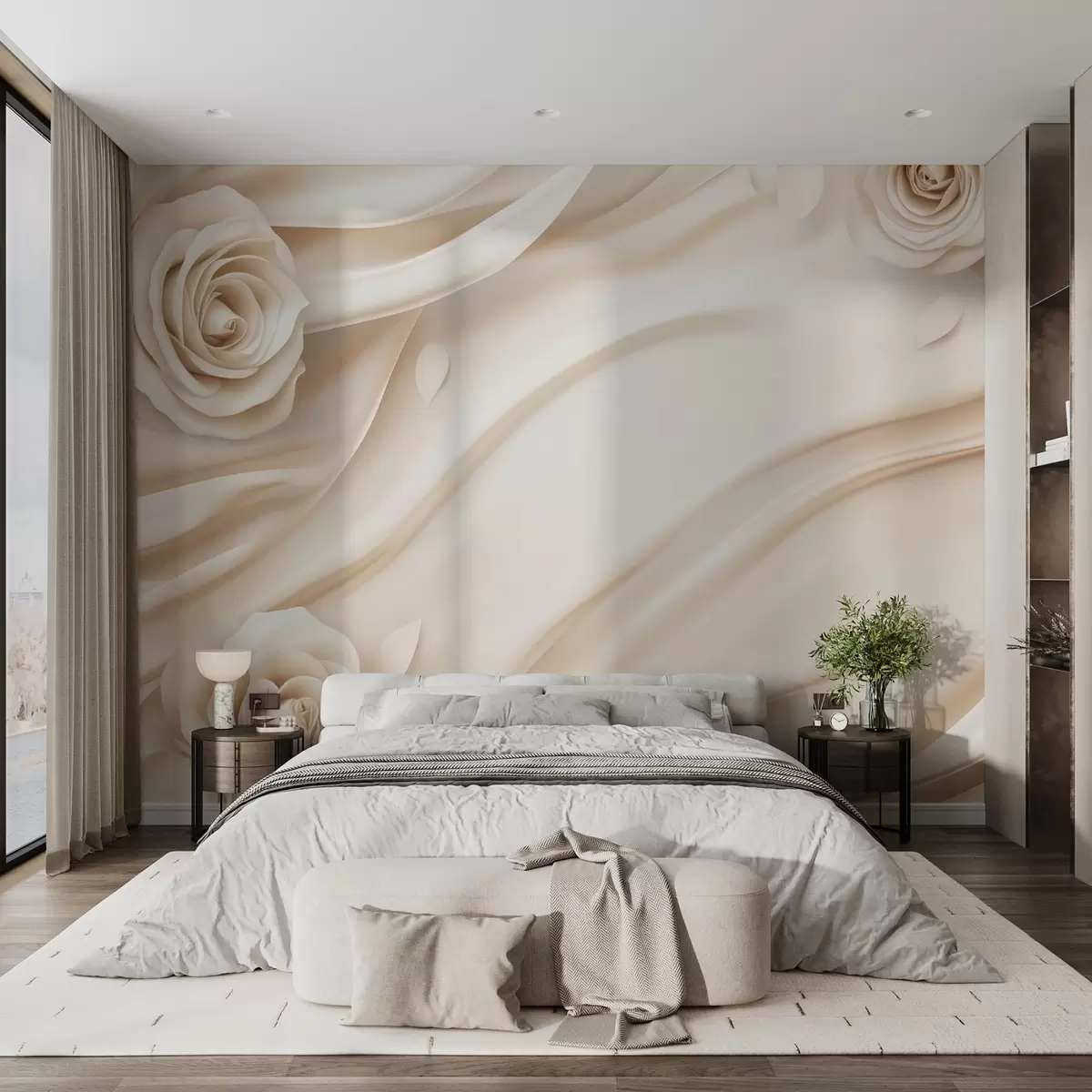Fotomurales Elegante fondo beige con rosas Nr. w02197