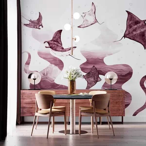 Fotomurales Pez manta raya, estilo acuarela, mar, océano, colores rosas Nr. w02266v3