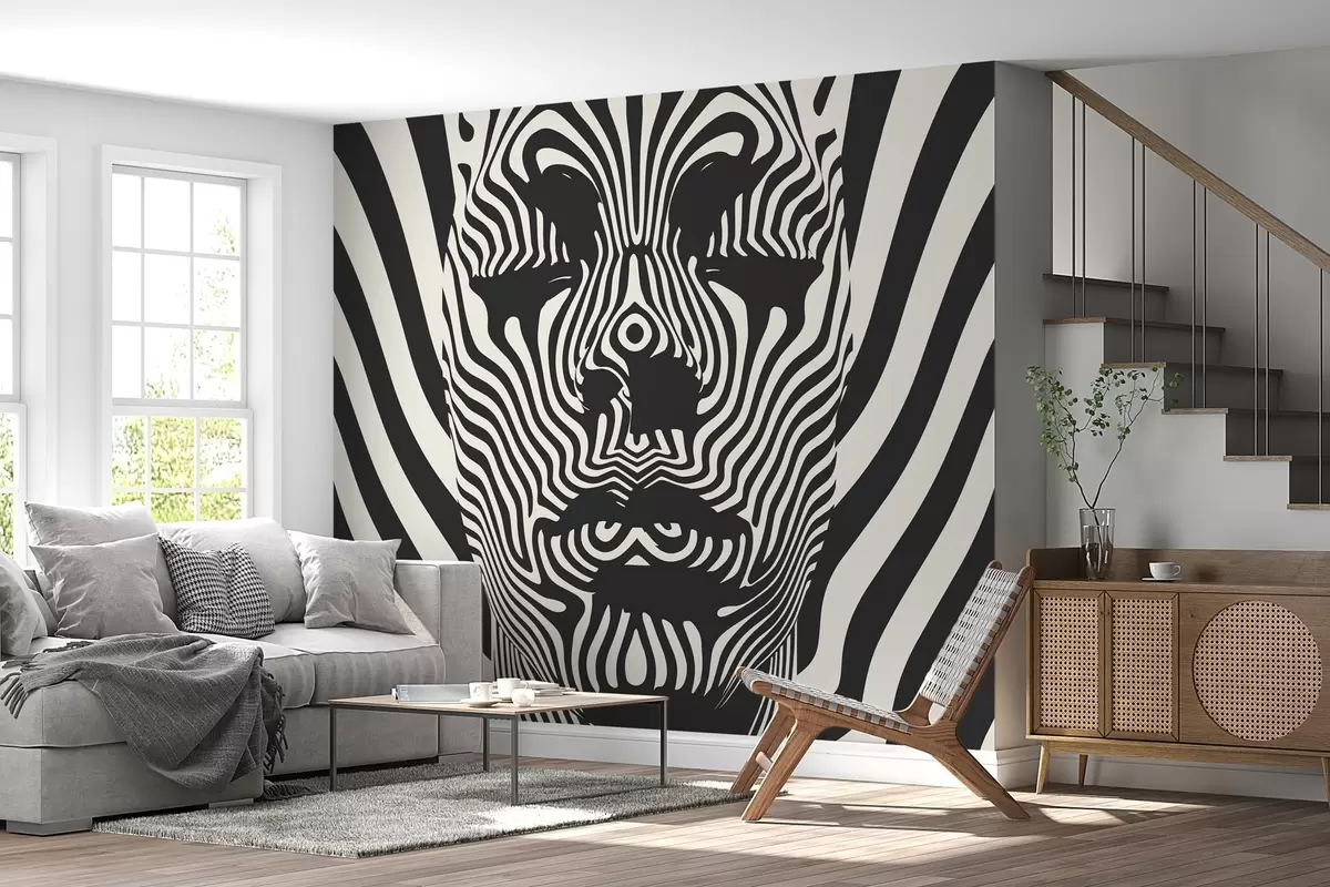 Fotomurales Op art estilo enrejado con la cara abstracta, líneas onduladas sobre fondo de color claro. Nr. w02285