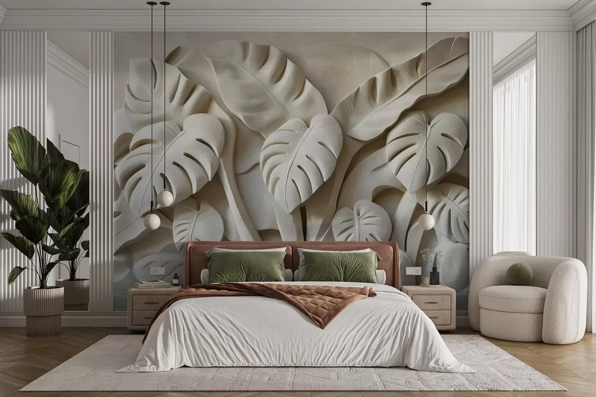 Fotomurales Bajorrelieve de grandes hojas de monstera Nr. w02312