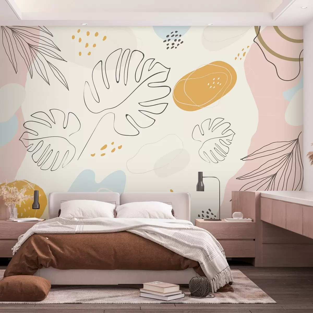 Fotomurales Diseño boho con hojas y figuras en colores pastel Nr. w02322