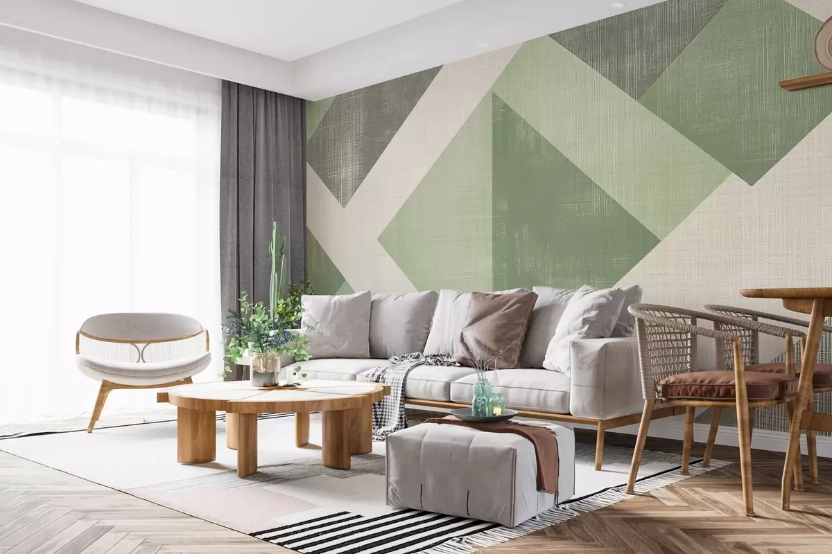 Fotomurales Moderno diseño geométrico de papel pintado con formas superpuestas en suaves tonos beige y marrón Nr. w02341v2