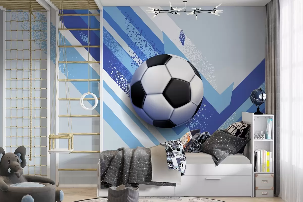 Fotomurales balón de fútbol sobre fondo abstracto dinámico en colores azules Nr. w02347