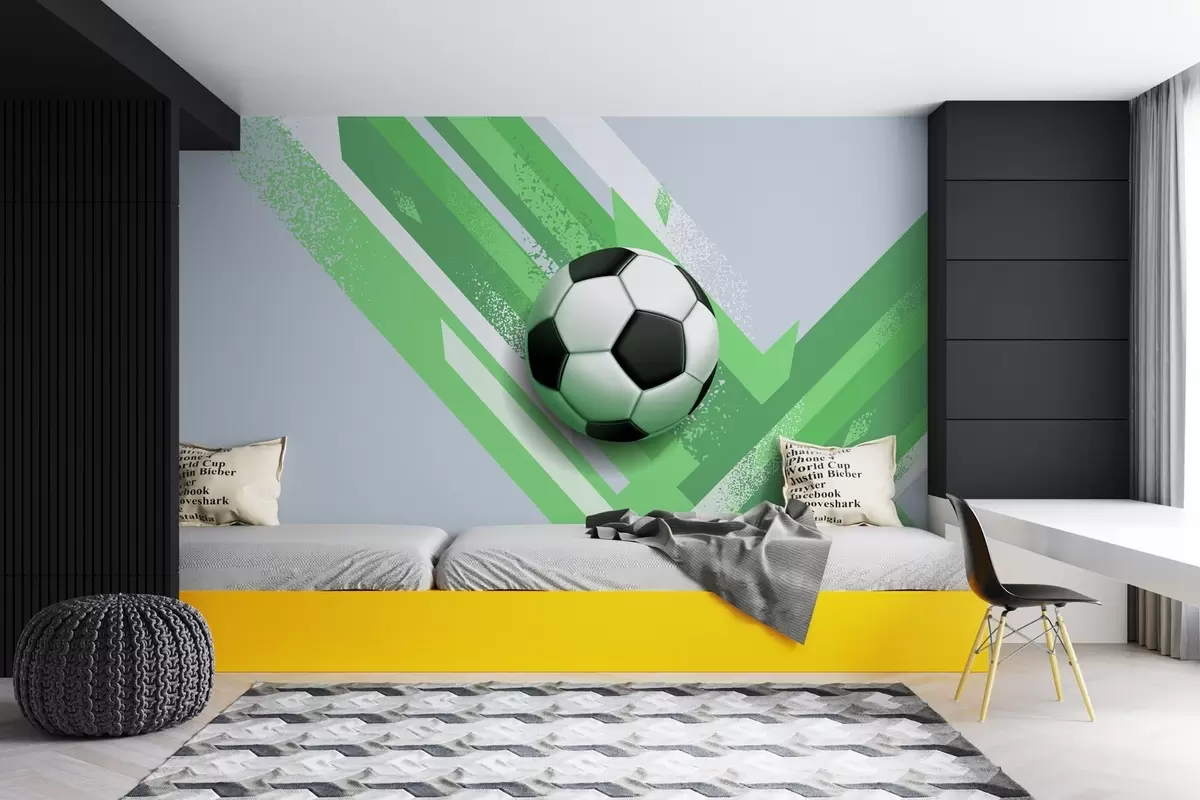 Fotomurales balón de fútbol sobre fondo abstracto dinámico en colores verdes Nr. w02347v1