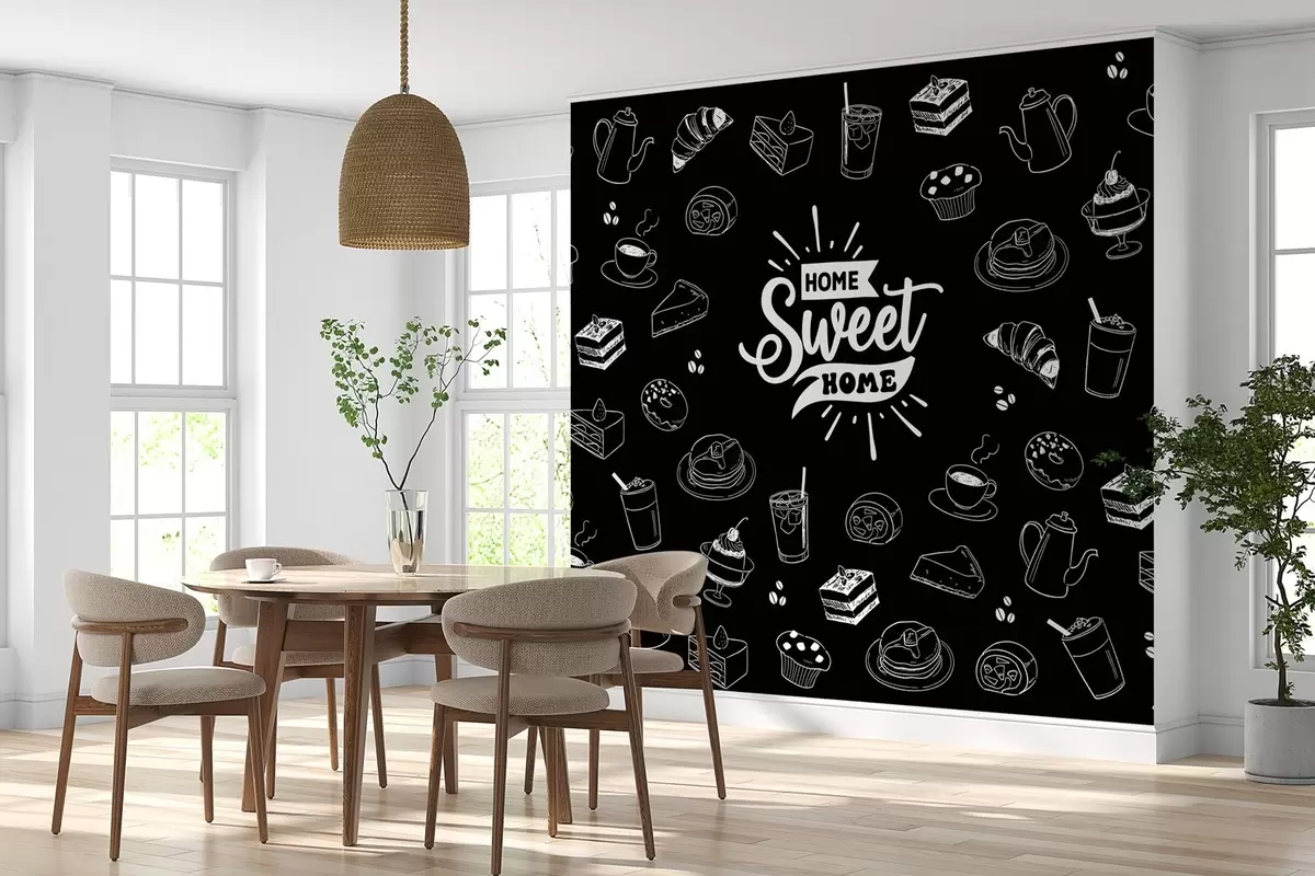 Fotomurales papel pintado negro para la cocina con motivos blancos Nr. w02349